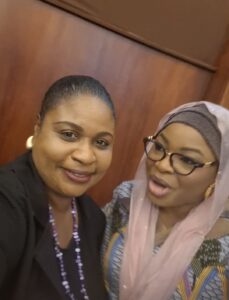 Women at the First Annual National Forum on Women in Government and Media in Accra.( Rebecca EKPE, Vice President, Ghana Journalists Association-GJA with Shamima Muslim- Moderator and Deputy Spokesperson to the President)