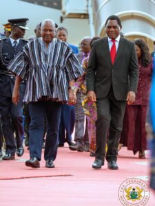 President John Mahama with the Zambia Leader during visit.
